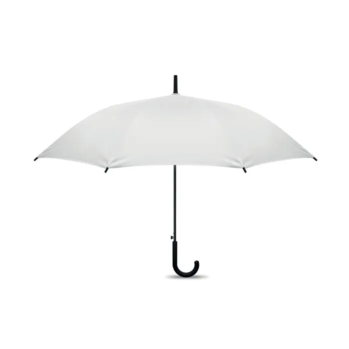 23-дюймовый прямой автоматически открывающийся белый зонт с металлической рамой черного цвета, ребрами из стекловолокна и панелями из ткани pongee 190T.