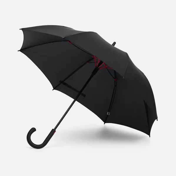 Легкий и невероятно прочный каркас из стеклопластика не боится порывов ветра. Сдержанный дизайн оживляет яркая деталь: красные акценты на каркасе видны только при раскрытии зонта.