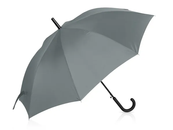 Купол серого зонта-трости выполнен из переработанного пластика. На ручке зонта расположена кнопка автоматического открытия. Гибкие спицы из стекловолокна делают зонт стойким к порывам ветра.